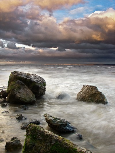 Но несколько не стыкуются размытые выдержкой волны и резкое небо.