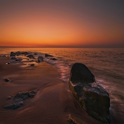 Интересный эффект получается, если отзеркалить. В естественном варианте взгляд невольно уходит вдаль, в море за горизонт, тк намытые волнами линии, идущие от ЛНУ по диагонали, упираются в урез воды почти перпендикулярно и невольно смотришь выше как по инерции. А если отразить по горизонтали, то граница воды приводит глаза от ЛНУ к краю картины и фотография делится надвое, исчезает эффект бесконечности.