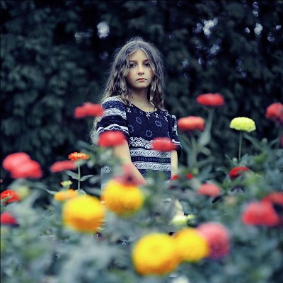 Уж больно жёлтые цветы режут глаз,тем самым отвлекают от главной темы кадра.