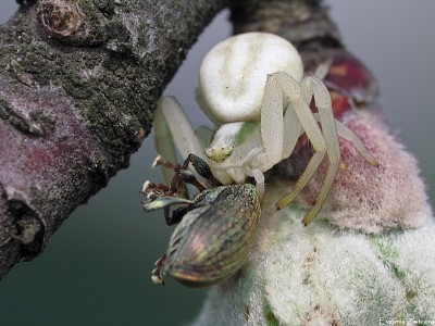 Паук-краб поймал долгоносика