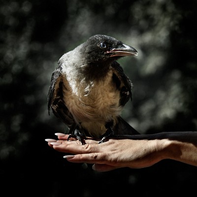 по началу пришлось его приучить к нам, сидель на руке и просто махать крыльями, так как после ранения одно крыло плохо работало.