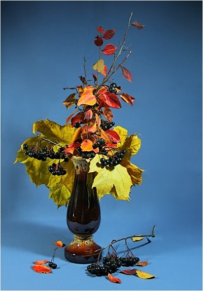 Красивая работа, Ольга! В этом букетике есть и скромная прелесть увядания листьев, и всплеск их былой яркости, и уверенная зрелость ягод... Да, октябрь такой