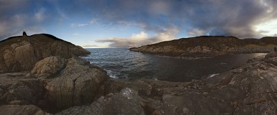кадр, словно с компьютерной игры, скалы выдают подобный образ), при этом композиционно вливаясь в реальные природные явления, то бишь облака и море)))