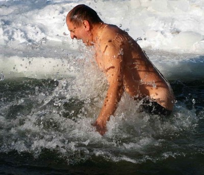 в самом деле первый раз дядя в прорубь полез...(если не соврал)...а я то уже 5 ...нет....6 лет как не нырял...