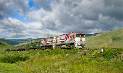 Тепловоз 2 Загал - 002 с пассажирским поездом Москва - Улан-Батор - Пекин. Перегон рзд. Хонхор - Бумбат