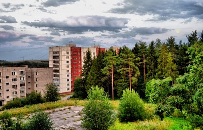 IvMari, Как то все получилось по отдельности... резкий переход от зеленого ПП строений к СП и ЗП и небу. наверное это. вытягивали яркость на деревьях и строениях?