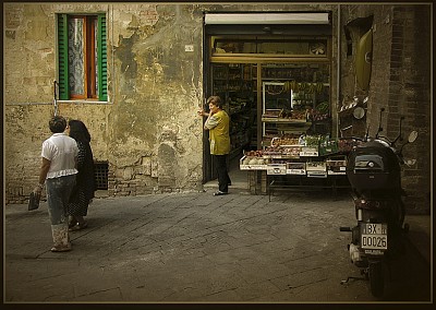 В Сиене я был всего день. Твердое убеждение - самый подходящий для фотографирования город. Очень жалею, что был всего один день (увезли насильно). А лучше бы было пожить недельку (если бы деньги были). Но я там снимал подготовку к знаменитым (раз в год) скачкам! Может, и выставлю.