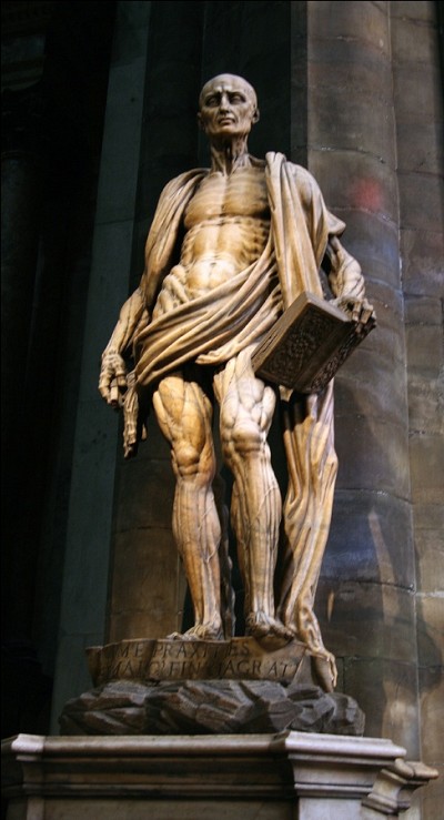 святой Варфоломей Уникальной работой является статуя покровителя рыбаков святого Варфоломея. Как известно, с его живьем содрали кожу. Именно в таком виде скульптор и запечатлел его в своем творении. Оформление интерьера собора продолжалось в течение 6 веков. Здание насчитывает тысячи скульптур, многие из которых стали образцом для подражания. Так, знаменитая статуя Свободы в Нью-Йорке выполнена Огюстом Вартольди, который использовал черты двух скульптур, находящихся на центральном балконе фасада Миланского собора. |