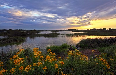 цельнее было бы в чб, так цветы тянут внимание на себя, закат на себя, рыбачки в последнюю очередь замечаются...а вообще визуально цветы главные в кадре оказываются (конечно, это IMHO)