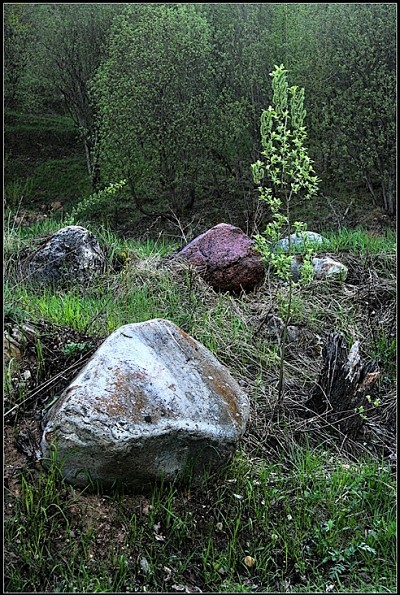 ОМЫТЫЕ ДОЖДЯМИ ВАЛУНЫ... Омытые дождями валуны, Лежат на месте, где ледник оставил, И зарастают мохом «кавуны», Седея тихо, словно против правил. Весной зелёная трава, Их укрывала и, цветя, хмелела. Зимой обильные снега, И холода… Земля белела. Они на месте, на века, Не сдвинуться, ни повернуться, Над ними только облака, И в прошлое им не вернуться… |