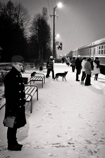 Сигнальщица выходит к путям при каждом прибытии поезда. Постоит, посмотрит на людей и уходит.