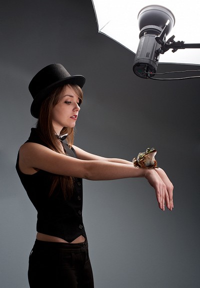 Под проработкой я имел в виду внятный светотеневой рисунок. На лице у девушки из света совсем чуток, остальное тень, правда чем-то смягченная (заполняющий, рефлектор или просто стены светлые), руки еще полбеды - у них хоть как-то форма читается, но все что ниже одна сплошная тень. Подобная стилистика освещения весьма интересна, вот только требует изрядного количества источников, в вашем случае потребовалось бы еще 2, а то и 3 источника дабы внятно подчеркнуть форму модели такими же световыми акцентами. У вас есть фото с хорошей постановкой света, думаю немного экспериментов, вы сами придете к нужному результату и без дополнительных осветителей.