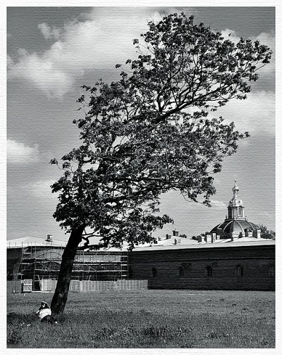 Polevoy, Ох... я польщен конечно, что вдохновил )), но текстура имеет как минимум настройки и по радиусу и по направлению тени и т.д)).. У тебя работа вертикальная и текстура резанула её на мелкие горизонтальные полоски.... Дереву тесно и сверху, да и в стороны хочется расширить... Короче- не более чем эксперимент.... я тоже как ребёнок радуюсь, когда новую кнопочку в шопе открою для себя))))