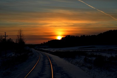 вполне возможно, но я рассматривал и тот и то вариант и оба вроде ничего для моих глаз, но в данном варианте у меня впечатление, будто бы едешь на поезде в последнем вагоне и смотришь в дверное окошко, где ненароком видишь этот закат, ж/д дорогу и естественно эти столбы) Можно сказать, оптический прицел моих глаз))