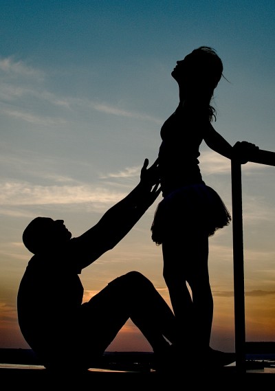 поза мужчины слишком унизительна и не подходит по смыслу, т.к. выражает не мольбу или призыв к возлюбленной, а просьбу о пощаде и милости у победителя ... ИМХО