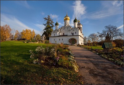 ЦЕРКОВЬ НИКОЛАЯ ЧУДОТВОРЦА Кирпичная церковь построена в 1664-1665гг. крепостным зодчим Одоевских Павлом Потехиным. По композиции и конструкции напоминает другие церкви того же времени в других усадьбах Одоевских. Здание состоит из двустолпного одноглавого четверика и четырех приделов о углам, повторяющих форму храма. Западные приделы расположены над галереями и имеют поэтому пониженное внутреннее пространство. Между ними первоначально помещалась настенная звонница, замененная в 1840г. малоинтересной колокольней, сооруженной по проекту архитектора М.Д.Быковского. Фасады церкви украшены муравлеными изразцами, дополняющими архитектурное убранство из лекального кирпича. Храм и приделы завершались тремя ярусами кокошников, закрытыми в XVIII-XIXвв. четырехскатной кровлей и вновь восстановленными при недавней реставрации. Главы первоначально покрывала поливная черепица. На главах приделов черепичное покрытие восстановлено при реставрации. При недавней реставрации восстановлено также позакомарное покрытые основного объема и приделов. Спасибо всем заглянувшим! |
