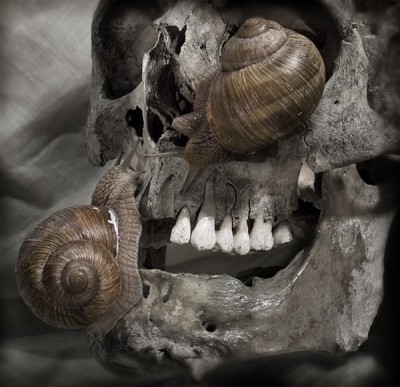 . Интересно конечно, но череп бы смотрелся лучше, если бы его выхватить светом из полной темноты.