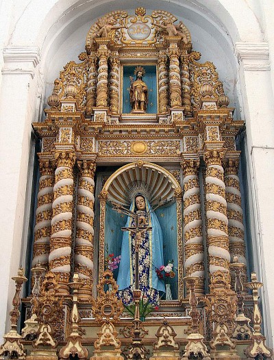 в Храме Жизнь святых и Иисуса отображает богатое внутреннее убранство кафедрального собора св. Екатерины. Фасад собора был увенчан двумя колокольнями, одна из которых позже обрушилась, а на второй и находится именно «Золотой Колокол». |