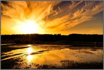 Облака как протуберанцы, как будто солнце взорвалось на горизонте.