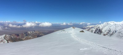 Amaniuto, спасибо. высота 5800 примерно, с этого ребра видна Алайская долина (за облаками) и начало Памирского хребта.