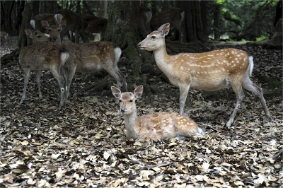 , в парке Нара, в Японии, они или ручные, или, как эти на снимке, не пугливые, а просто осторожные.))