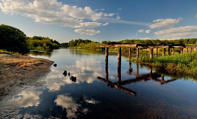 В этой части р. Щара военные, постоянно, уже несколько лет строят переправы для своих боевых машин. Старые мосты, в свое время, живут своей жизнью