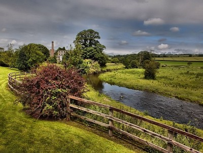 Интересно построена композиция с изгибом реки и заборчиком на переднем плане.
