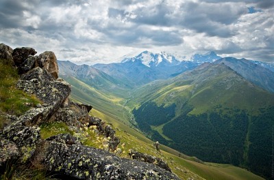 Вид на Эльбрус с отрога далины Улу-Хурзук