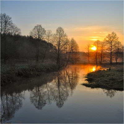 Ранним апрельским утром на небольшой лесной речушке
