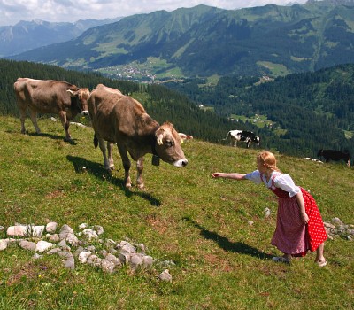 My weakness - a pretty girl in a colourful peasant dress and cows with bells on. What could be nicer.