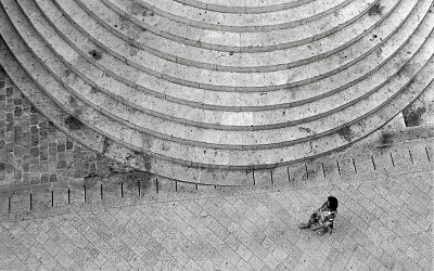 Kozhukhov, к вопросу о субъективности восприятия: я не вижу этого противопоставления - каменного, тяжелого, и человеческого, уязвимого. Вероятно, эти смыслы здесь тоже есть. Я снимал визуальную картинку: чистую форму (обычно на этих ступеньках сидят люди...), красивую, симметричную, и человека (одного!), проходящего мимо. Здесь противопоставление статичного и динамичного, вечного и временного, совершенного и несовершенного...) . И одновременно - ракурс важен: он остранняет (термин формалистов) картинку. Спасибо!