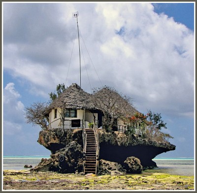 Ресторанчик в океане Снимок сделан в сентябре 2012 года на восточном побережье о.Занзибар (Танзания). Ресторан имеет название "Скала" (The Rock) и ютится на скале стоящей метрах в 150 от берега. Во время прилива скала частично погружается в воды Индийского океана. |