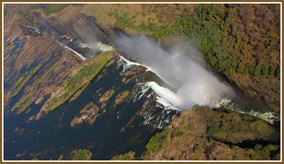 Снимок водопада Виктория сделан с вертолёта в сентябре 2012 года со стороны Зимбабве.