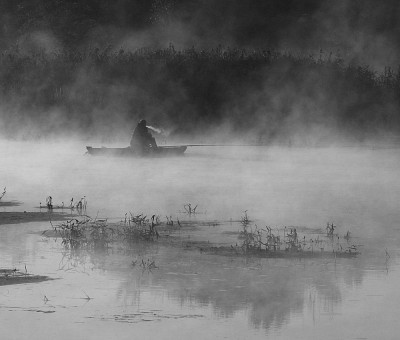 Туман красиво клубится, сливаясь с рекой. Отлично снято!