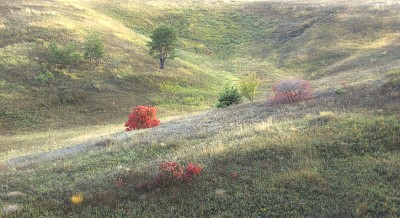 Хорошая цветовая перекличка + такой же зигзаг дорожка овраг + на бархатной траве. Однако