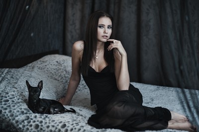 Уши собачки хорошо накрахмалены. хороший портрет для портфолио дамы ,но не более и чего так народ тащится. Никогда не видели девушку сидящей на кровати,ну приоткрытый ротик,влажные губки, стандартно- банальное движение левой руки,голова повернута три четверти.попса