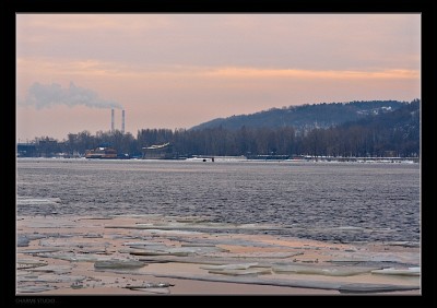 Вид на памятник Лыбеди и развлекательные заведения на воде.