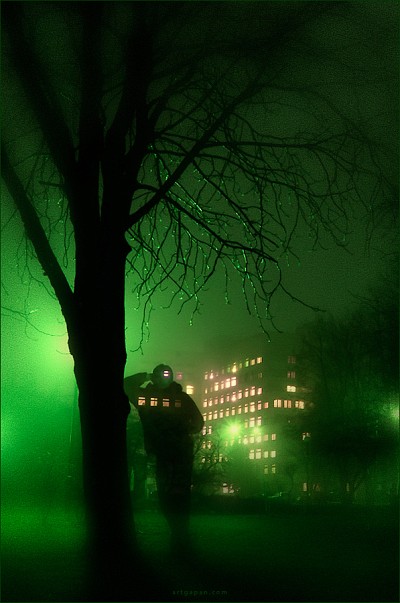 Поставил фотик на штатив, зарядил лонг выдержку и просто подошел к дереву
