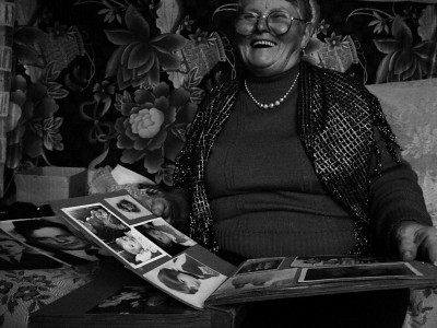 моя бабушка рассматривала старые альбомы и рассмеялась от воспоминаний о молодости