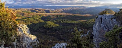Крым. В ноябре близ Бахчисарая. День близится к закату. Справа в кадре Тепе-Кермен...