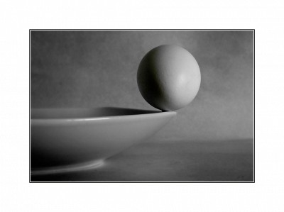 Красиво и правильно сфокусировано ! зрительный окцент идёт на яйцо и край тарелки , а полностъю реская тарелка уводила бы зрителя от главного .