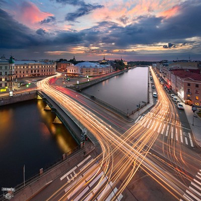Без названия http://serg-degtyarev.livejournal.com/78833.html панорама 2 горизонтальных кадра, небо и низ сняты с интервалом порядка получаса, короткая выдержка для неба, для земли стыковались несколько кадров - трассеры на длинной выдержке (порядка 10 минут), на короткой - примерно 5-10 снимков, несколько дублей для разгорающейся подсветки и пересветов, сшивка через PTGui с последующей сборкой в CS3, 17мм |