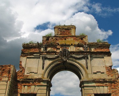 Въездная брама Ружанского замка Сапег . Сейчас она уже отреставрирована