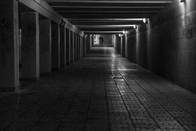 Вроде бы все хорошо,кроме источника света справа.Он уводит от темы и поэтому-лишний.К сожалению сама тема сильно заезжена: двое в конце туннеля. Без дополнительных сверхэффектов ее не расшевелить.Вот если бы там Путин с Медведевым... ИМХО