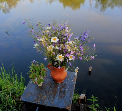 Полевые цветы на фоне реки