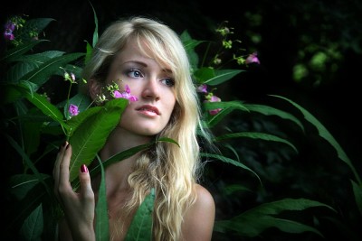 по книге Ульяма Мортенсена "Модель. Проблемы позирования" нижняя точка съемки для такой челюсти просто неприемлема. непонятно чья рука в кадре. голова отрезана листом. ну и просто смаз, от неумения пользоватся тапаратом. 1/30 s, F/8.0, 90 mm, ISO 200.
