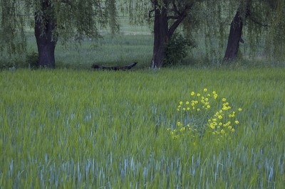 Или терпите,-у меня и кустиков достаточно,и сурепок,и закатов-рассветов,и одиноких деревьев,и речек-по диагонали слевого угла выходящих;и столбиков,и бабушек-как у вас. .