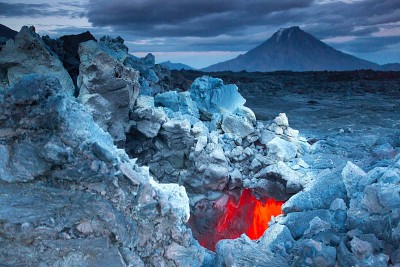 Последний очаг Камчатка. Сентябрь 2013. Вот так заканчивалось уже названное выдающимся извержение вулкана Толбачик. 26 августа завершилась активность главного кратера и еще неделю лава двигалась по трубам, но вскоре остановилась и она. На снимке последний очаг, в котором можно было увидеть раскалённую лаву, которая уже не двигалась. Из этой ямы вырывался газ такой температуры, что одно неловкое движение и быстрая стрижка вам обеспечена. На дальнем плане вулкан Удина. Подробности читайте здесь http://ratbud.livejournal.com/17306.html |