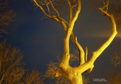 ствол и ветви дерева в свете фонаря... У меня вызвали ассоциации с оленьими рогами... Снято на мыльницу Samsung L74 Wide