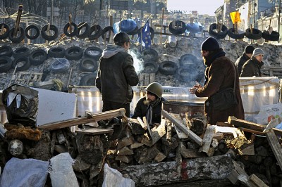 Баррикада на Крещатике у ЦУМа. Изнутри.